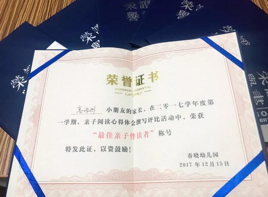 荣获“最佳亲子伴读者”称号