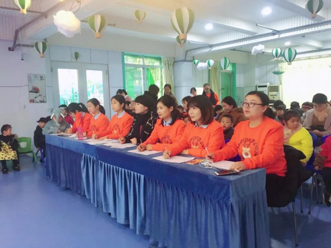 春晓幼儿园教研园长柯老师带队的教师评委团正在为宝贝们的故事比赛进行评比
