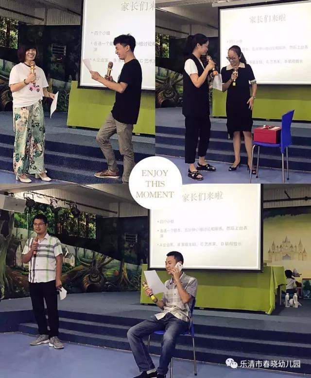 通过四组家长配合演出四种家庭,企业家、家庭主妇、艺术家、航母舰长这些家长的家庭,存在着哪些问题,并进行讨论。