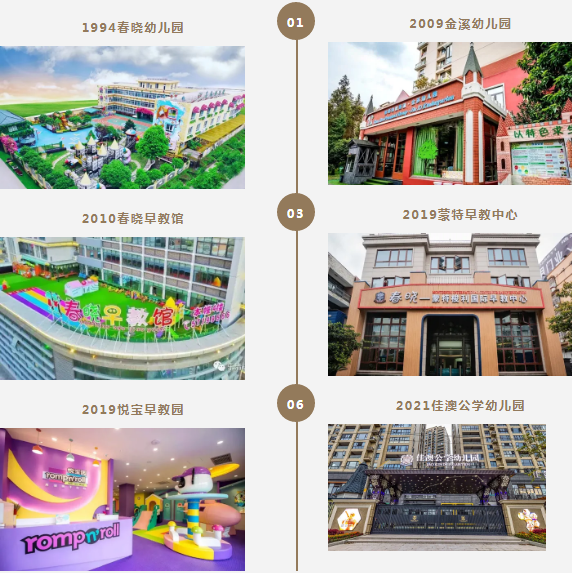 历经27年风雨,现如今春晓已成为幼教界龙头单位。春晓幼教先后创办金溪分园、春晓早教馆、悦宝园早教中心、蒙特梭利早教中心、佳澳公学幼儿园,让更多孩子享受优质的学前教育。