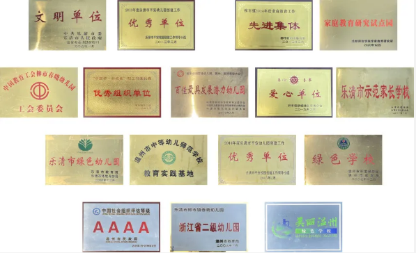 在全园职工的共同努力下,春晓幼儿园先后被评为全国百佳民办幼儿园、浙江省二级幼儿园、浙江省示范型放心餐饮单位、温州市绿色学校、温州市示范园、温州市一级幼儿园、乐清市文明单位、乐清市绿色幼儿园、乐清市家庭教育工作先进集体、幼教先进单位、乐清市示范家长学校、乐清市平安幼儿园创建优秀单位。