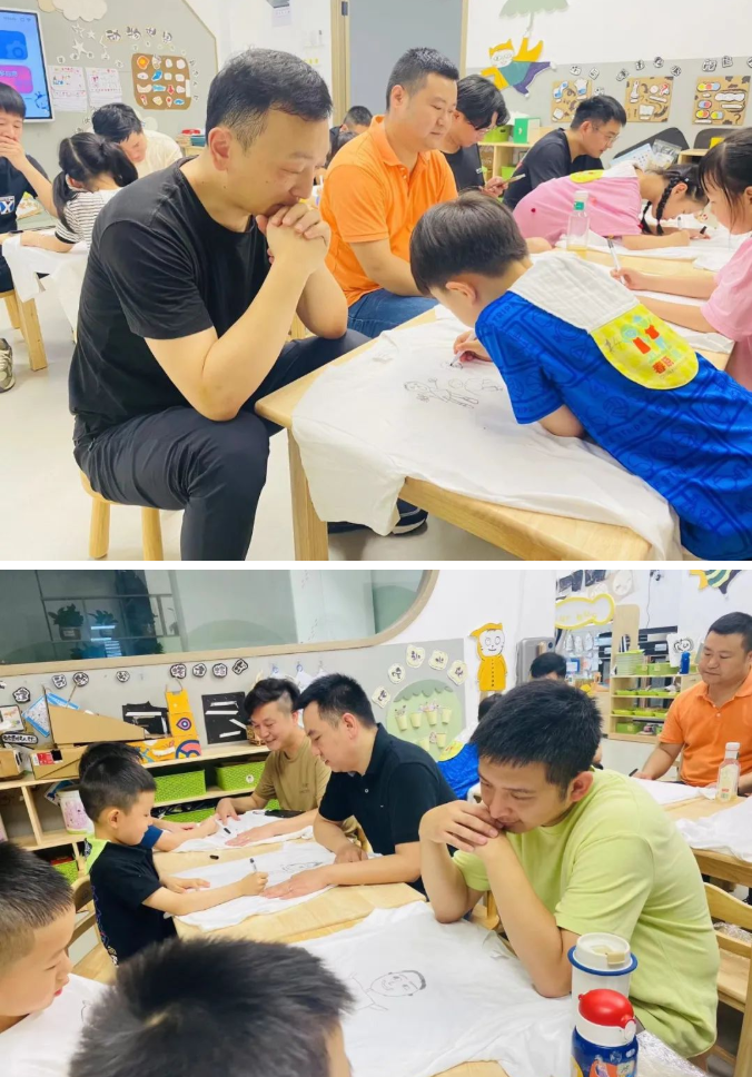 宝宝和大人都在发挥自己的想象,一笔一划,一涂一抹,温馨的、搞怪的、甜蜜的、萌趣的一件T恤承载的是爱意、是想象、是乐趣更是这个“父亲节”弥足珍贵的回忆,为辛苦的爸爸送上一件父亲节的礼物。