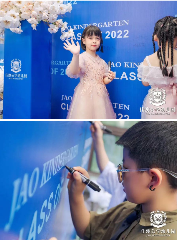 宝贝们在签到墙写上自己的名字,在佳澳留下你们稚嫩却坚定的印记