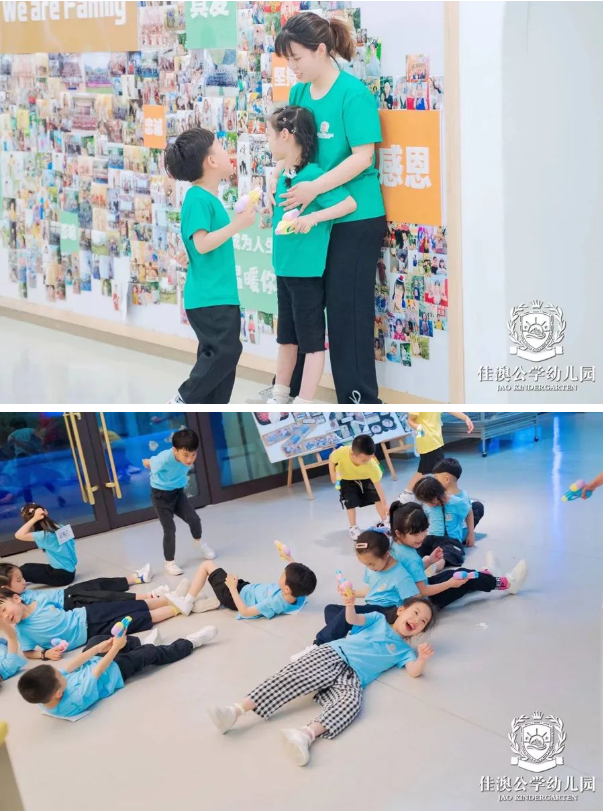 我们为宝贝们准备了水枪和变色名牌。为了宝贝们的安全,“滋名牌大战”一触即发。而老师们的撕名牌大战也获得全场宝贝的呐喊助威!