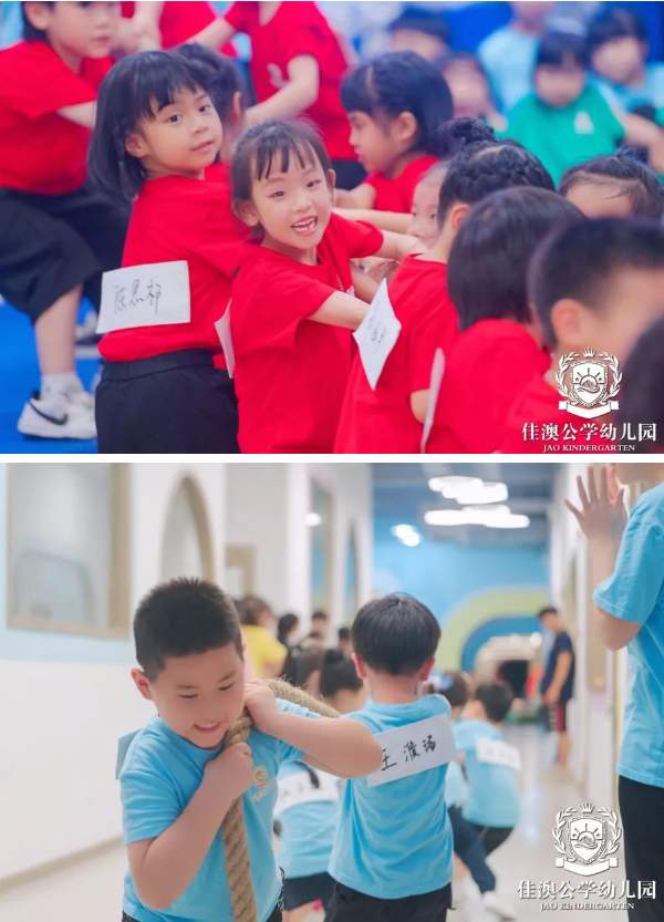 班级队伍间的拔河比赛,考验团队的协作能力。宝贝们拼尽全力,勇夺金币。